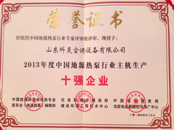 我司參加2014第六屆中國地源熱泵行業高層論壇·暨地源熱泵2013行業主機設備生產十強企業頒獎