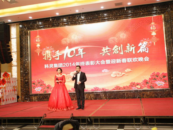 210日,科靈集團2014 “攜手10年,共創(chuàng)新篇”年度表彰大會暨新春聯(lián)歡晚會慶典于濰坊君豪大酒店隆重舉行。年會由年度總結(jié)、新年晚會、優(yōu)秀表彰、年終晚宴四部分構(gòu)成,集團公司及子公司全體員工齊聚一堂,共話公司一年來的發(fā)展,規(guī)劃新一年的戰(zhàn)略方向。