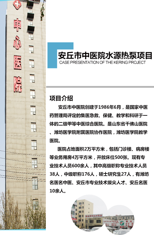 安丘市中醫院創建于1986年6月,是國家中醫藥管理局評定的集醫急救、保健、教學和科研于一體的二級甲等中醫綜合醫院。是山東省千佛山醫院、濰坊醫學院附屬醫院協作醫院,濰坊醫學院教學醫院。