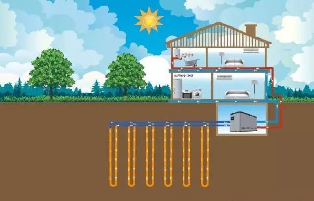地熱資源的溫度一年四季相對穩(wěn)定,冬季比環(huán)境空氣高,夏季比環(huán)境空氣低,這種溫度特性使之比傳統(tǒng)空調系統(tǒng)運行效率要高40%,節(jié)能和節(jié)省運行費用40%左右。