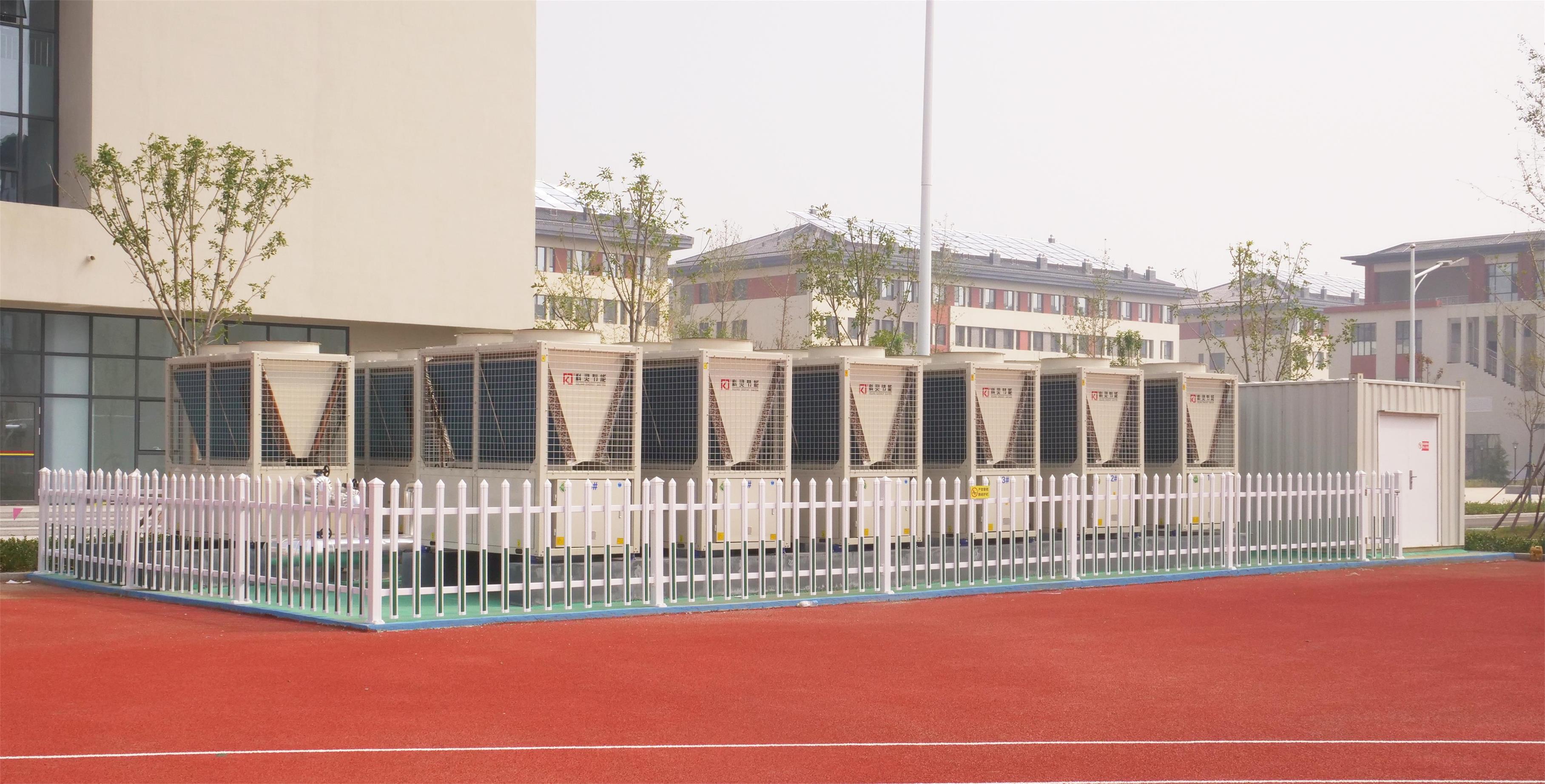 安丘市第二中學新校區占地210畝,總建筑面積9萬多平方米,設計規模72個教學班,可容納師生6000人。校區建筑物供暖和制冷全部采用山東科靈節能裝備股份有限公司生產的KFM-130RDF超低溫(補氣增焓型)空氣源熱泵機組設備,共計4個能源泵站50臺機組。根據校區建筑物功能,對各能源站精心設計,合理布局,并且與校區景觀合理搭配,自然美觀。