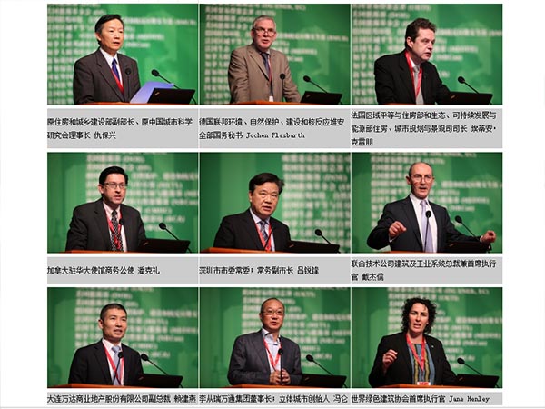大會在28日上午九點整準(zhǔn)時開始,由國家住房和城鄉(xiāng)建設(shè)部副部長仇保興主持,貴州省人民政府副省長慕德貴、加拿大駐華大使商務(wù)公使潘克禮、深圳市常務(wù)副市長呂銳鋒、聯(lián)合技術(shù)公司建筑及工業(yè)系統(tǒng)總裁兼執(zhí)行官戴杰儒、方興地產(chǎn)(中國)有限公司總經(jīng)理李從瑞向大會致辭。德國聯(lián)邦環(huán)境、自然保護(hù)、建設(shè)和核反應(yīng)堆安全部國務(wù)秘書Jochen Flasbarth;法國區(qū)域平等與住房部和生態(tài)、可持續(xù)發(fā)展與能源部住房、城市規(guī)劃與景觀司司長埃蒂安?克雷朋;大連萬達(dá)商業(yè)地產(chǎn)股份有限公司副總裁賴建燕;萬通投資控股股份有限公司、北京萬通立體之城投資有限公司董事長馮侖;世界綠色建筑協(xié)會執(zhí)行官Jane Henley出席開幕式,并發(fā)表演講。